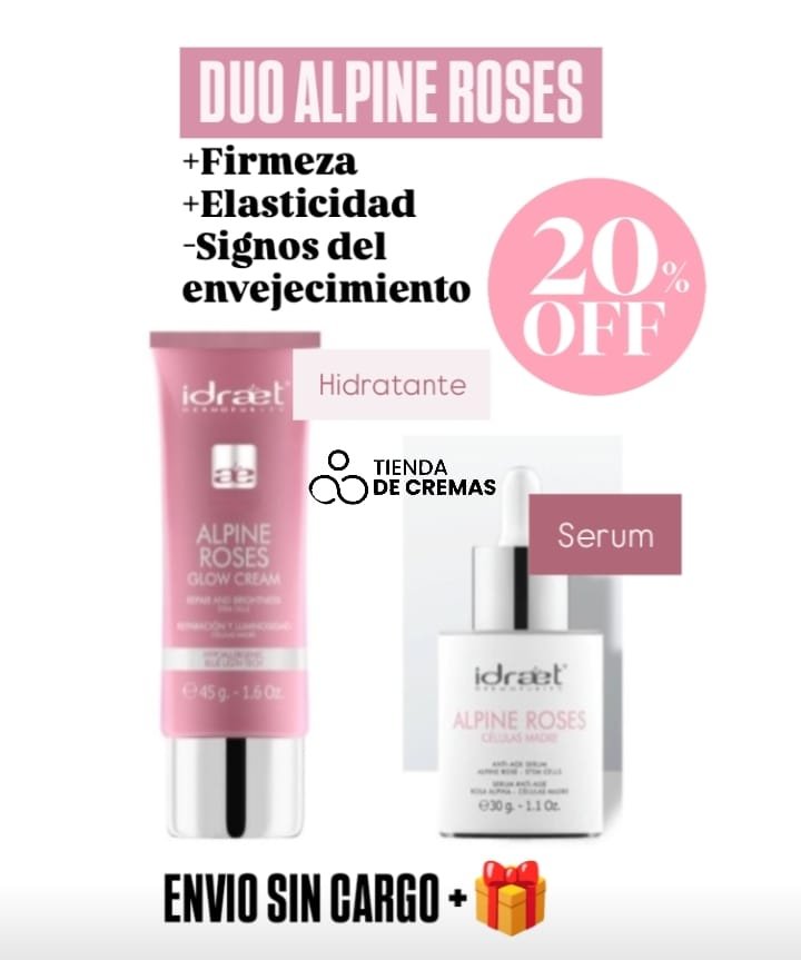 Este combo combina dos tratamientos de alta eficacia con extracto de rosas alpinas, ideales para combatir los signos del envejecimiento y devolverle a tu piel firmeza, elasticidad y luminosidad.