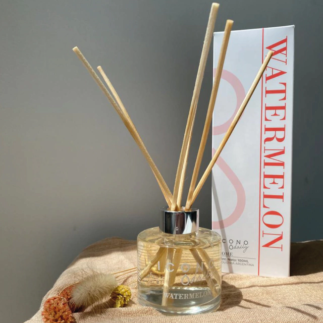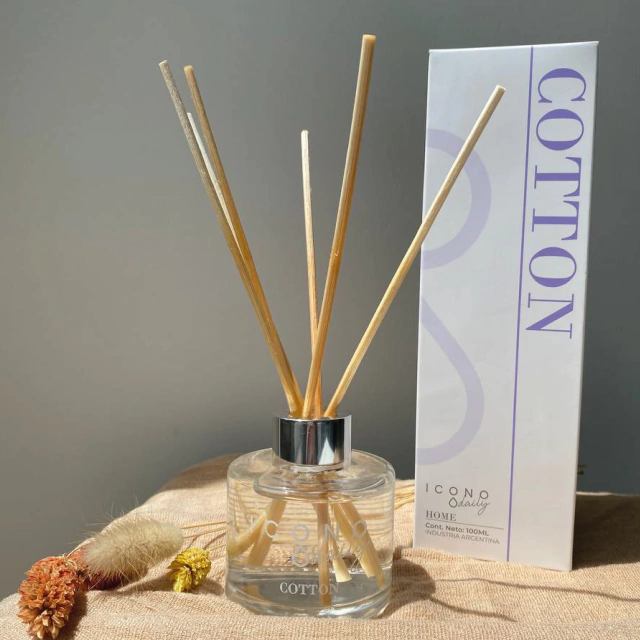 Modo de uso: Desenroscar la tapa del difusor y retirar la guarnición de pvc. Luego volver a enroscar la tapa y colocar todas las varillas de ratan dentro del envase con la fragancia. Para lograr una correcta aromatización y de manera prolongada, es necesario invertir las varillas de cada 3 o 4 días.
