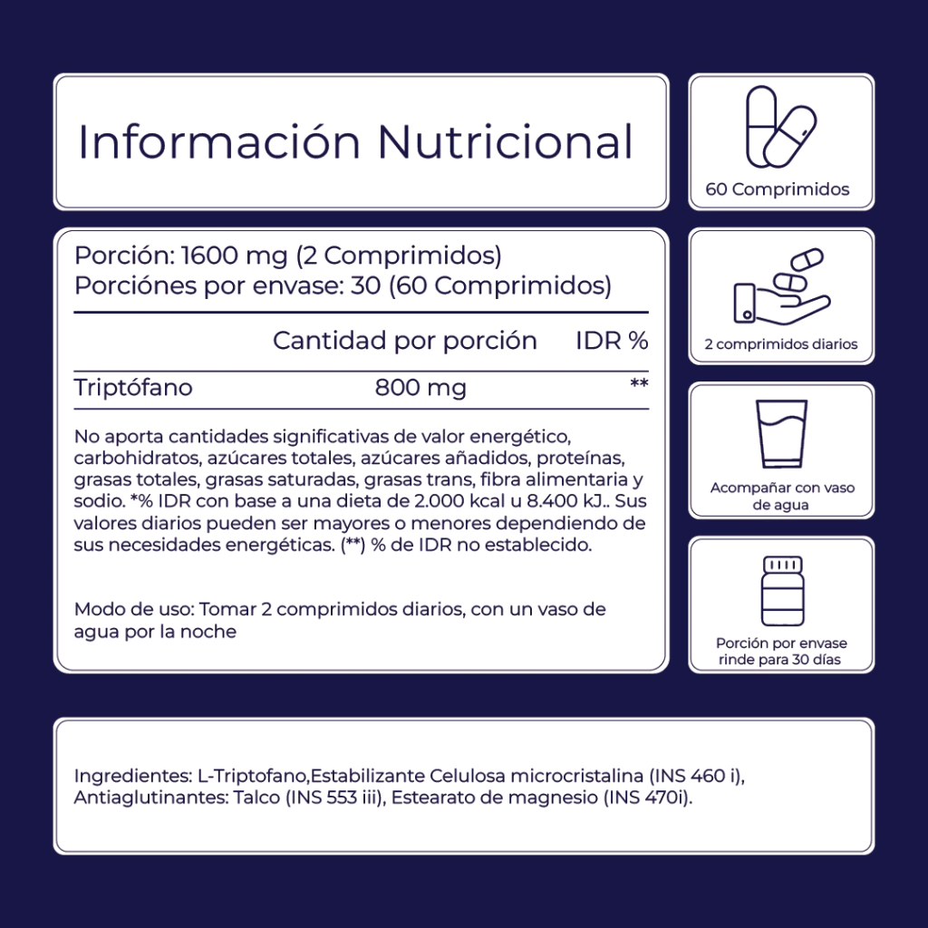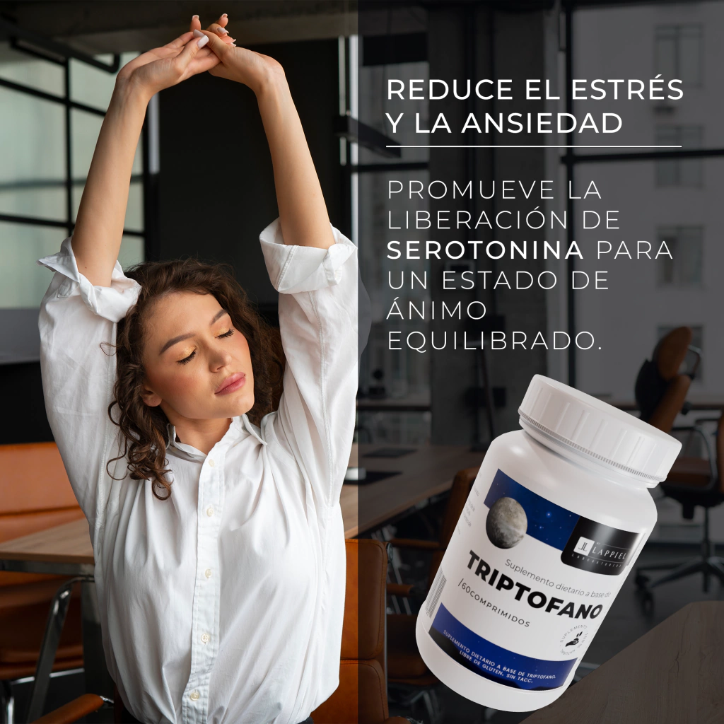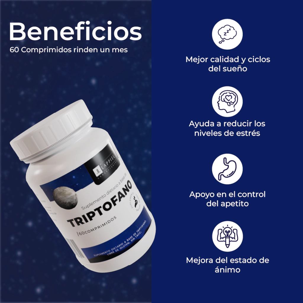 Mejora del Sueño: Es un precursor de la serotonina, que a su vez se convierte en melatonina, una hormona que regula el ciclo del sueño. Puede ayudar a mejorar la calidad y duración del sueño.