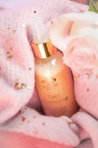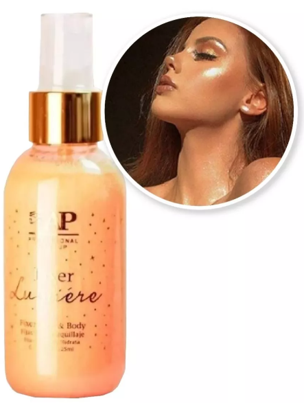 Fijador formulado para alargar la duración de tu maquillaje con un efecto glowy. Deja la piel iluminada y radiante por su contenido de pigmentos metálicos. Gracias a su bomba brumizadora ultra soft su acabado es perfectamente parejo. Se puede aplicar tanto en el rostro como en el cuerpo.