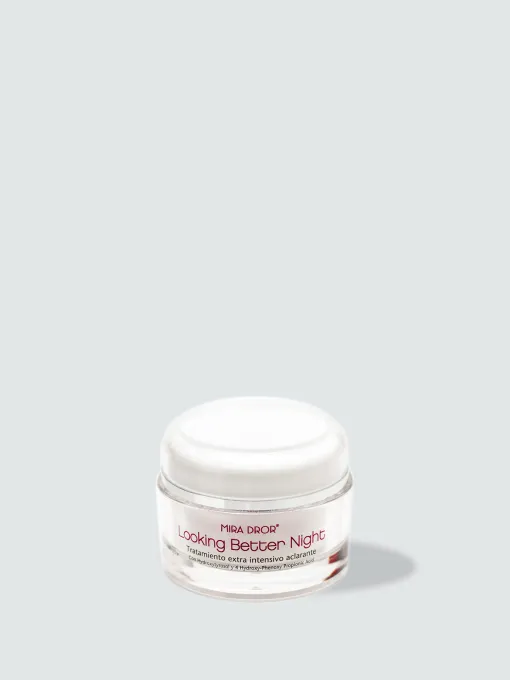 Looking Better Night está especialmente indicada para tratar pieles maduras y con manchas durante la noche, incluso en temporadas de exposición solar sin presentar riesgo alguno. Se acompaña su uso con Looking Better Day de uso diurno acortando así el proceso de despigmentación y acercándote resultados visibles en muy poco tiempo.
